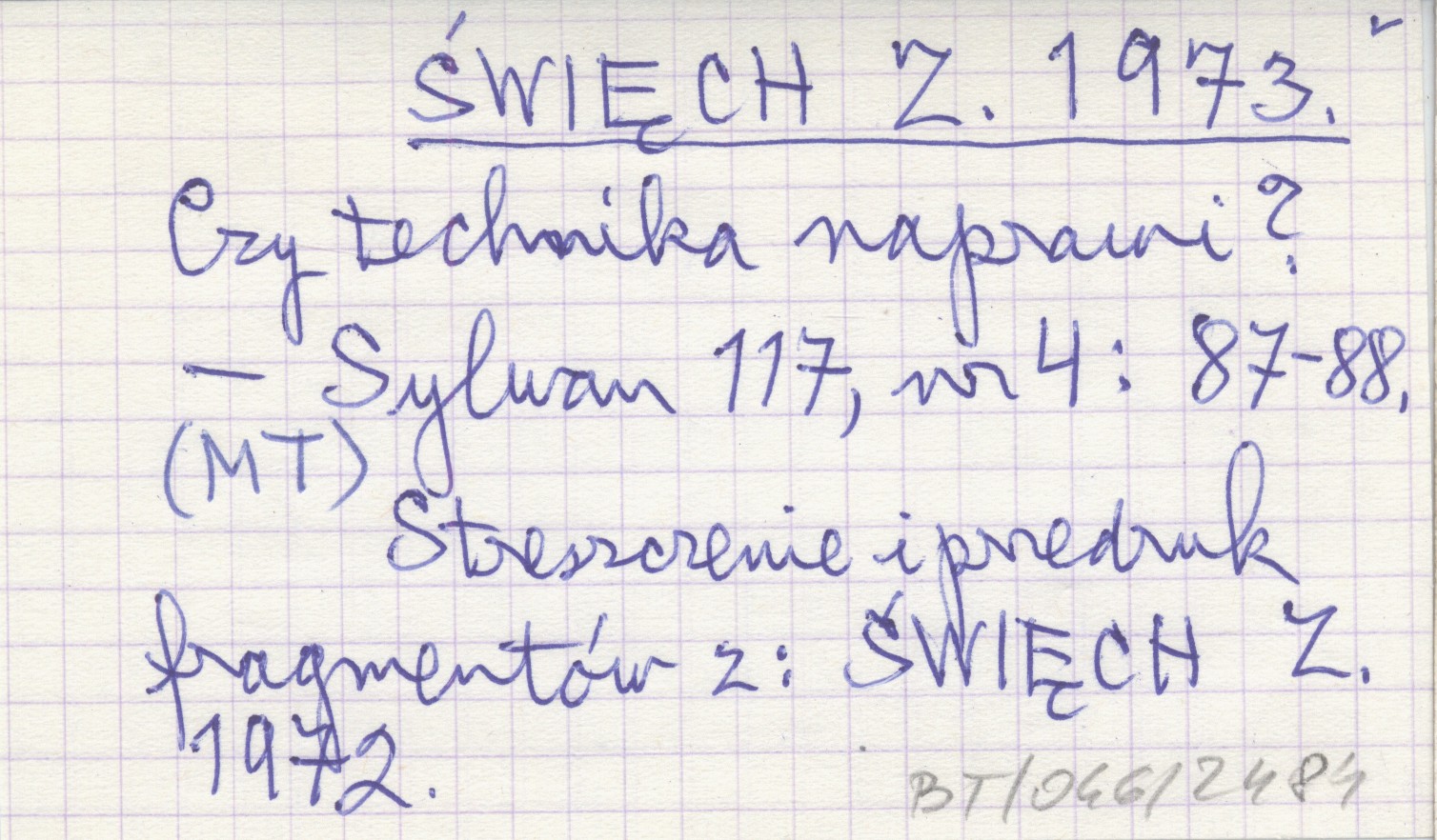 Sylwan, 117, nr 4: 87-88. Streszczenie i przedruk fragmentu z: ŚWIĘCH Z. 1972.
