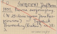 ŚWIĘCICKI Józef Marian 1951 Piewca swojszczyzny. (W 25-lecie zgonu Jana Kasprowicza).