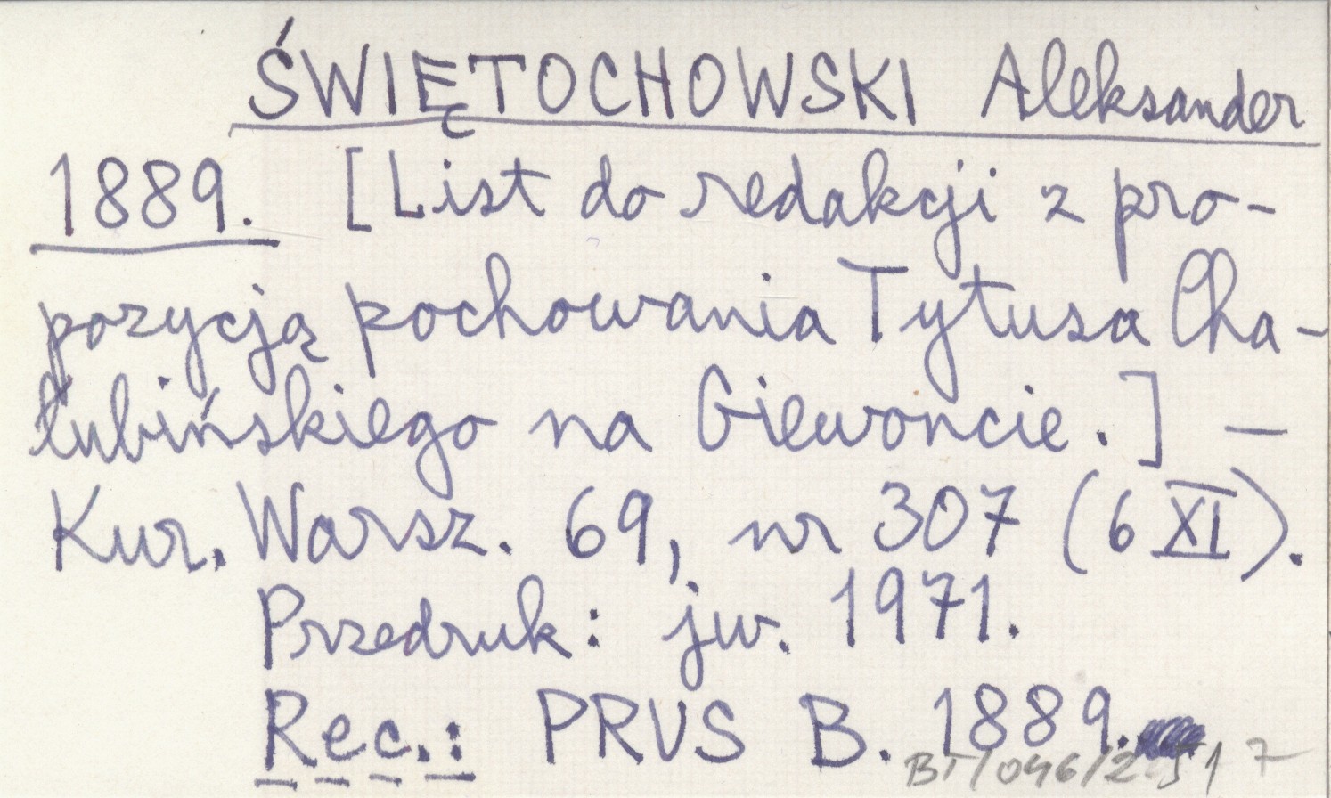 ŚWIĘTOCHOWSKI Aleksander 1889 [List do redakcji z propozycją pochowania Tytusa Chałubińskiego na Giewoncie.]