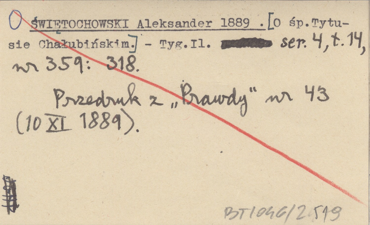 Tygodnik Illustrowany, Ser. 4, t. 14, nr 359: 318. Przedruk z "Prawdy" nr 43 (10 XI 1889).