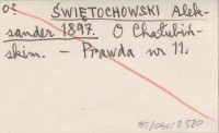 ŚWIĘTOCHOWSKI Aleksander 1889 [O śp. Tytusie Chałubińskim.]