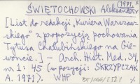 ŚWIĘTOCHOWSKI Aleksander 1971 [List do redakcji "Kuriera Warszawskiego" z propozycją pochowania Tytusa Chałubińskiego na Giewoncie.]