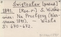 Świętosław 1891 [Rec. o:] S. Witkiewicz: Na Przełęczy (Warszawa 1891).