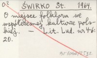 ŚWIRKO St. 1964 O miejsce folkloru we współczesnej kulturze polskiej.