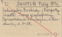 ŚWISTUŃ Filip 1876 Galicyjskie Beskidy i Karpaty lesiste. Zarys geograficzny.