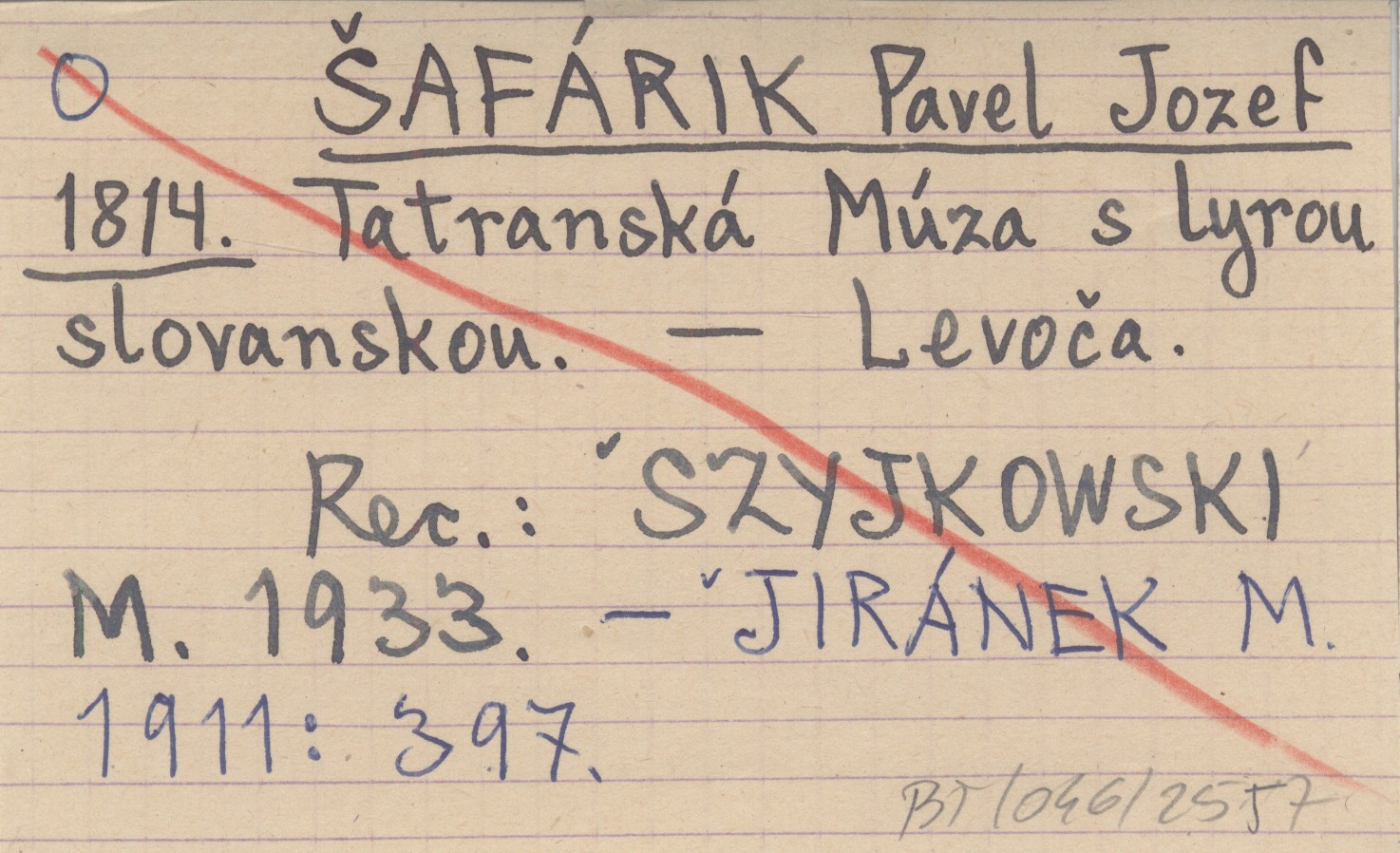 ŠAFÁRIK Pavel Jozef 1814 Tatranská Múza s lyrou slovanskou.