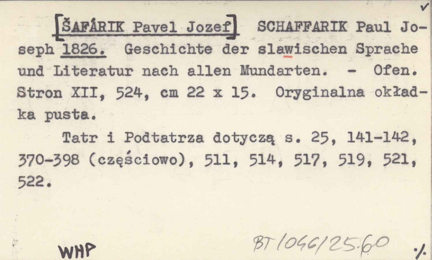SCHAFFARIK Paul Joseph [ŠAFÁRIK Pavel Jozef] 1826 Geschichte der slawischen Sprache und Literatur nach allen Mundarten.