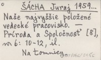 ŠÁCHA Juraj 1959... Naše najvyššie položené vedecké pracovisko.
