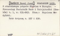SZAFARZYK [ŠAFÁRIK Pavel Jozef] 1835 O starodawnym pobycie Sławian w Europie.