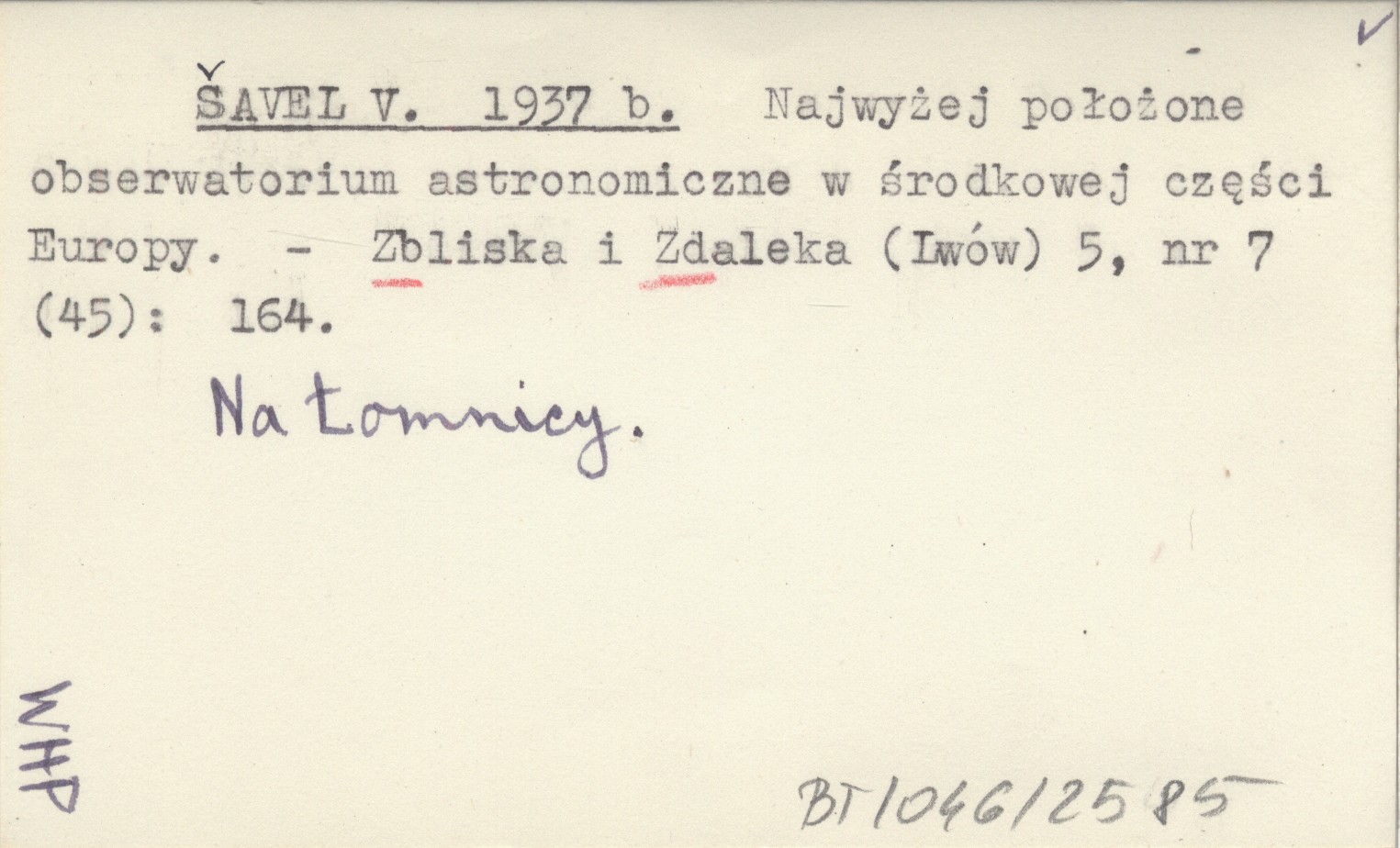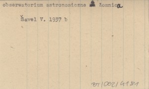 ŠAVEL V. 1937 b Najwyżej położone obserwatorium astronomiczne w środkowej części Europy.