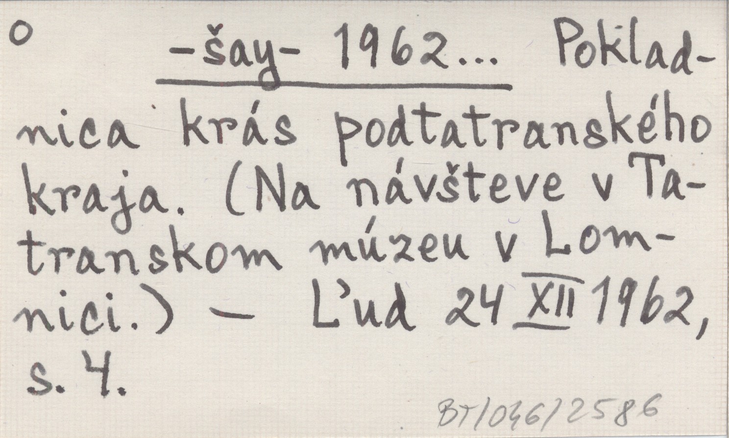 -šay- 1962... Pokladnica krás podtatranského kraja. (Na návšteve v Tatranskom múzeu v Lomnici).