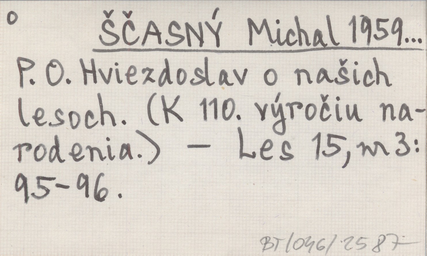 ŠČASNÝ Michal 1959... P. O. Hviezdoslav o našich lesoch. (K 110. výročiu narodenia).