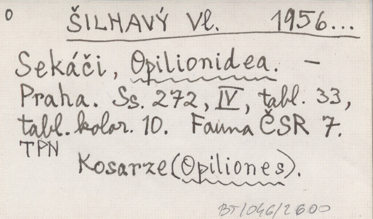 Praha (Fauna ČSR, 7) , 272, IV s., 33 k., 10 k. kolor. Kosarze (Opiliones).