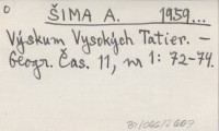 Výskum Vysokých Tatier.