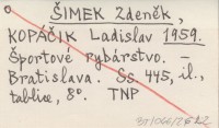 ŠIMEK Zdeněk KOPÁČIK, Ladislav. ; 1959 Športové rybárstvo.