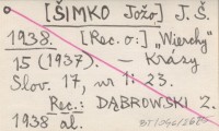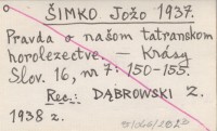 J. Š. [ŠIMKO Jožo] 1938 [Rec. o:] "Wierchy" 15 (1937).