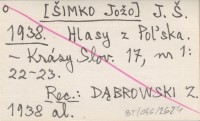 J. Š. [ŠIMKO Jožo] 1938 Hlasy z Poľska.