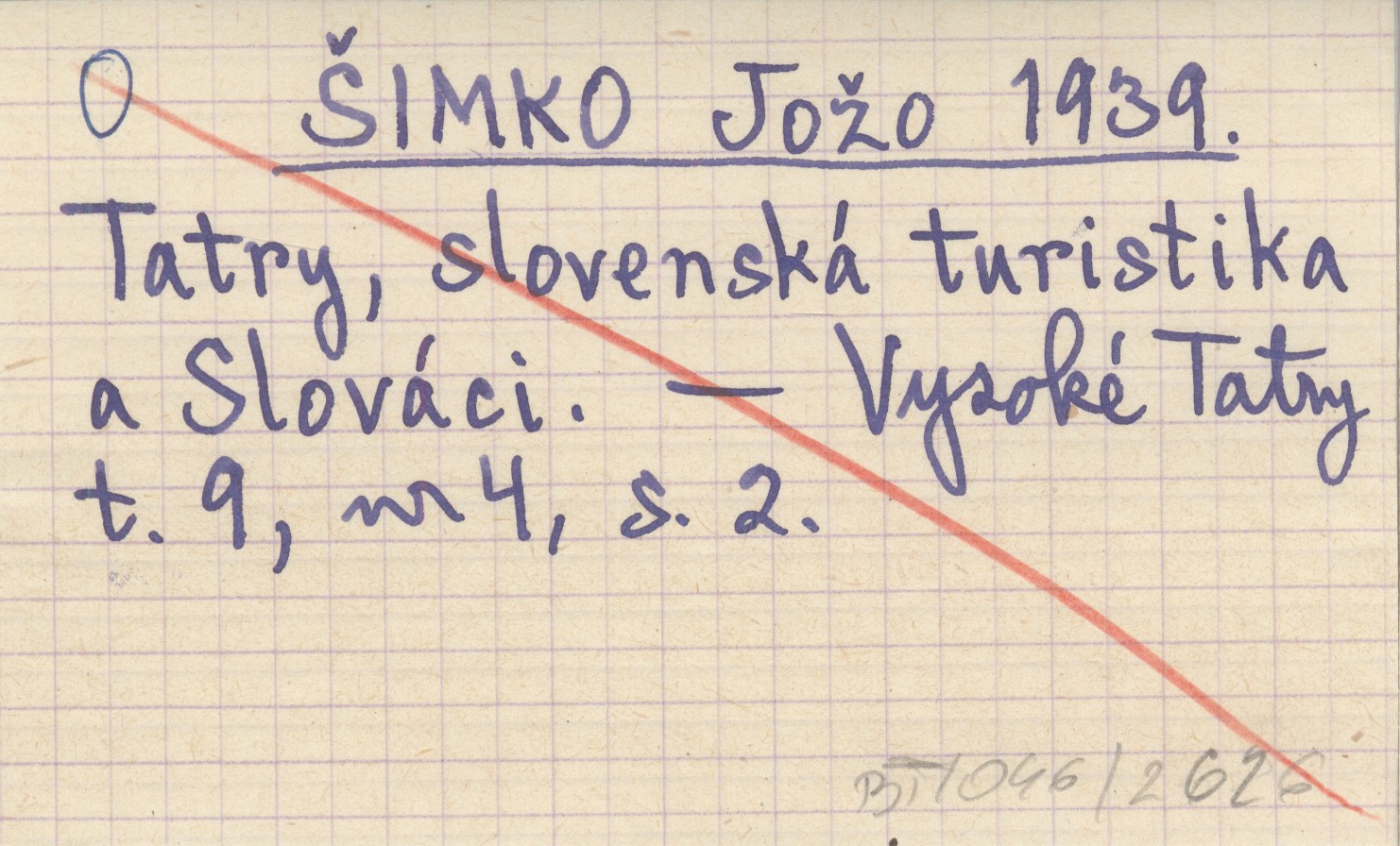 ŠIMKO Jožo 1939 Tatry, slovenská turistika a Slováci.