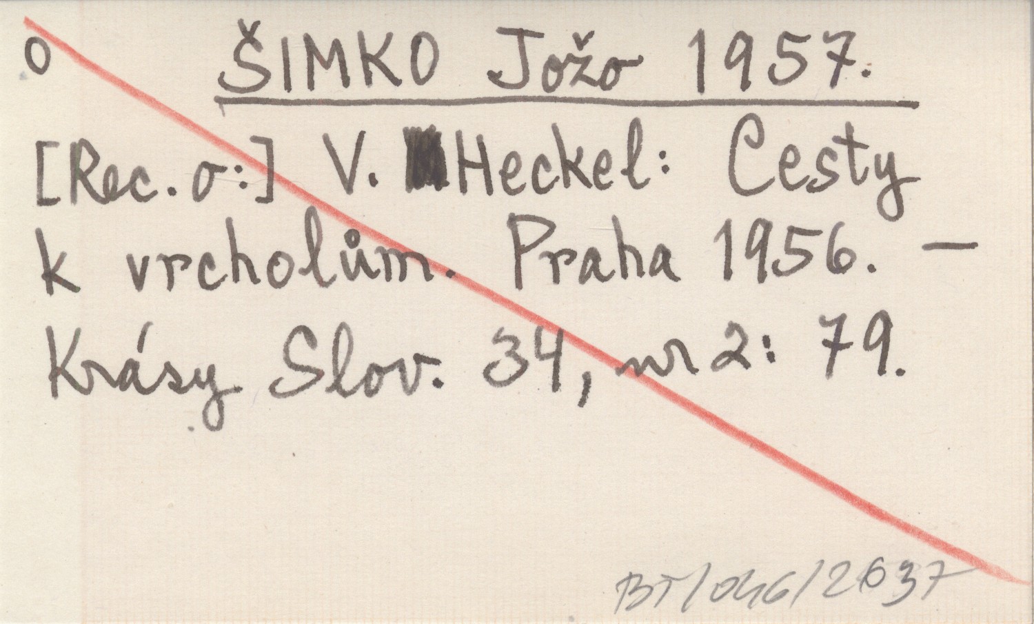 ŠIMKO Jožo 1957 [Rec. o:] V. Heckel: Cesty k vrcholům. Praha 1956.