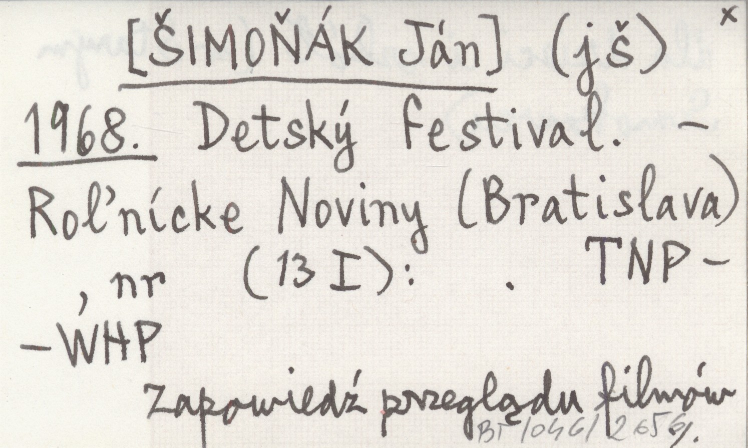 Roľnícke Noviny (Bratislava) , 13 I. Zapowiedź przeglądu filmów dla dzieci i szkół (w Starym Smokowcu).