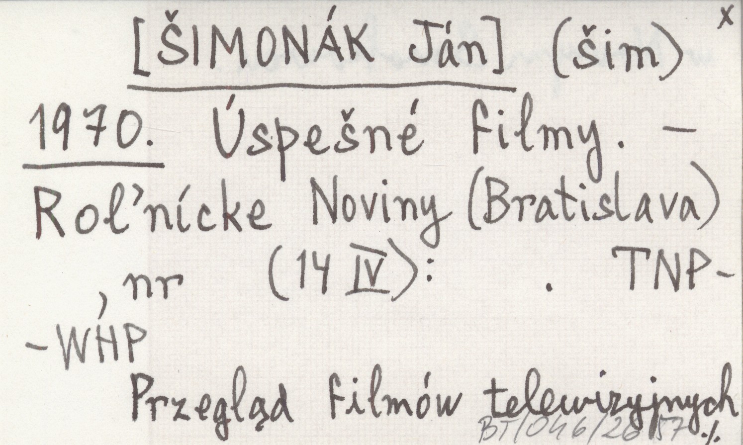Roľnícke Noviny (Bratislava) , 14 IV. Przegląd filmów telewizyjnych w Nowym Smokowcu.