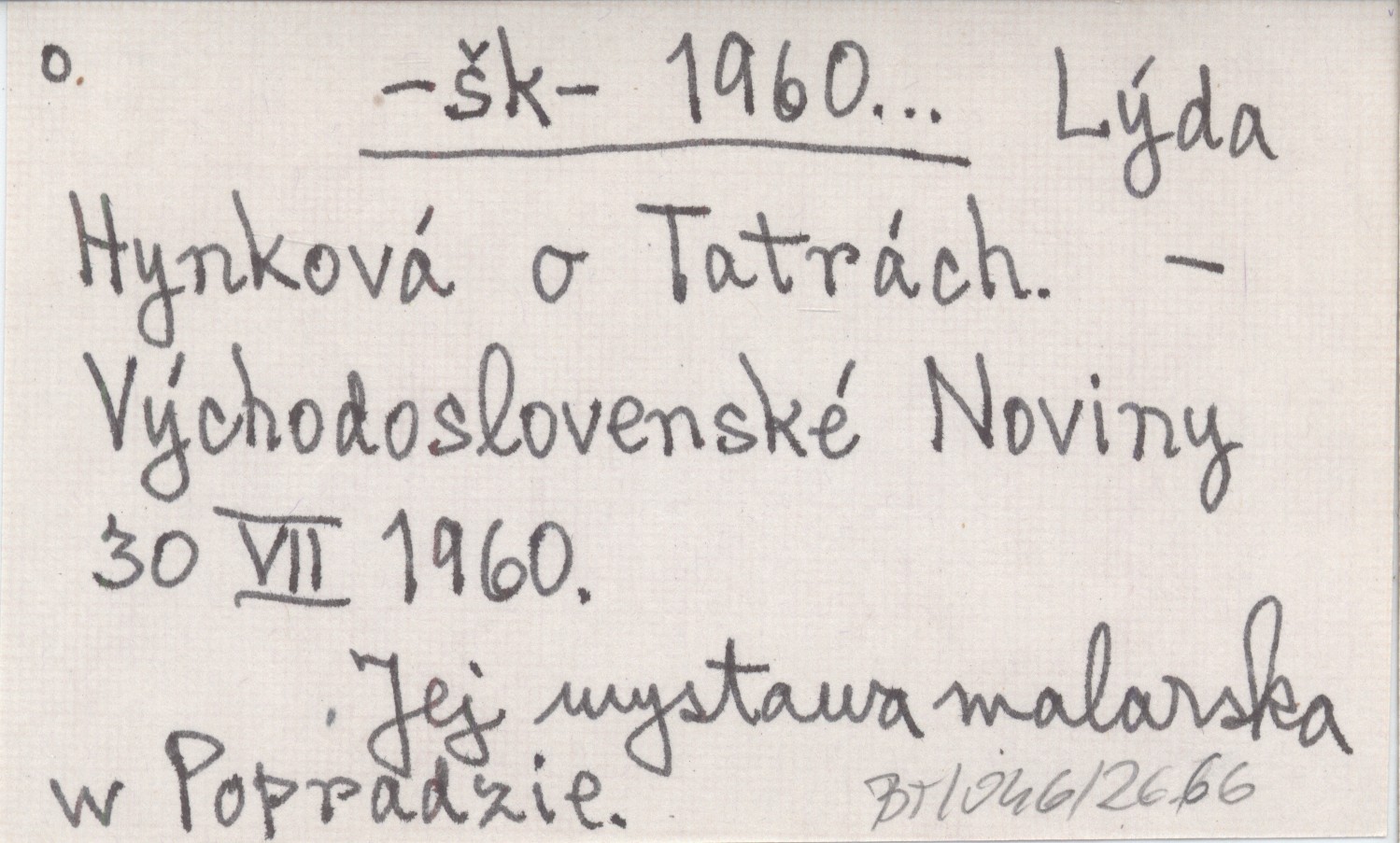 Východoslovenské Noviny, 30 VII 1960. Jej wystawa malarska w Popradzie.