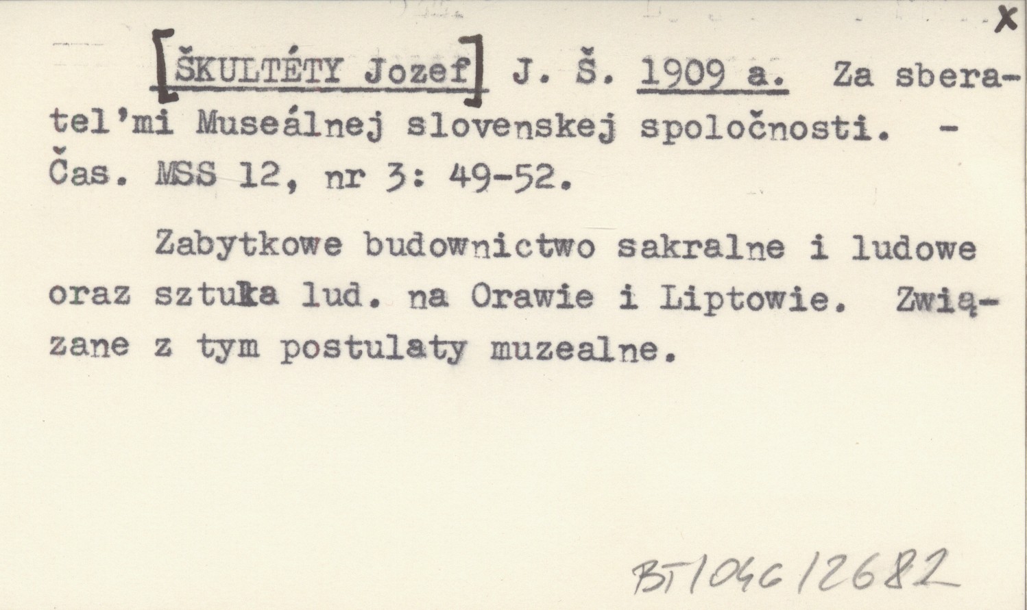 Časopis Muzeálnej Slovenskej Spoločnosti, 12, nr 3: 49-52. Zabytkowe budownictwo sakralne i ludowe oraz sztuka ludowa na Orawie i Liptowie. Związane z tym postulaty muzealne.