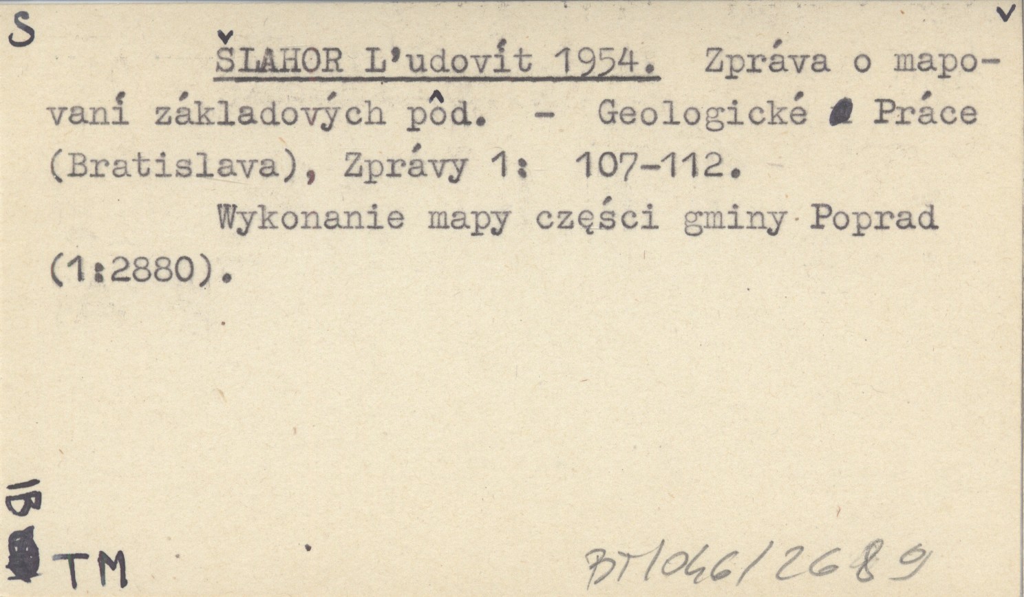 ŠLAHOR Ľudovít 1954 Zpráva o mapovaní základových pôd.