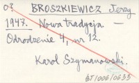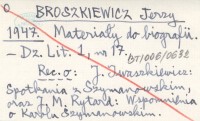 BROSZKIEWICZ Jerzy 1947 Materiały do biografii.