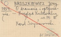 BROSZKIEWICZ Jerzy 1954 O dramacie i optymizmie.