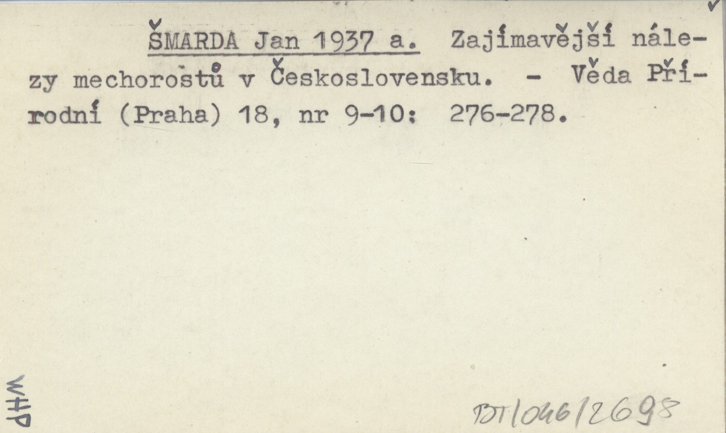 ŠMARDA Jan 1937 a Zajímavější nálezy mechorostů v Československu.