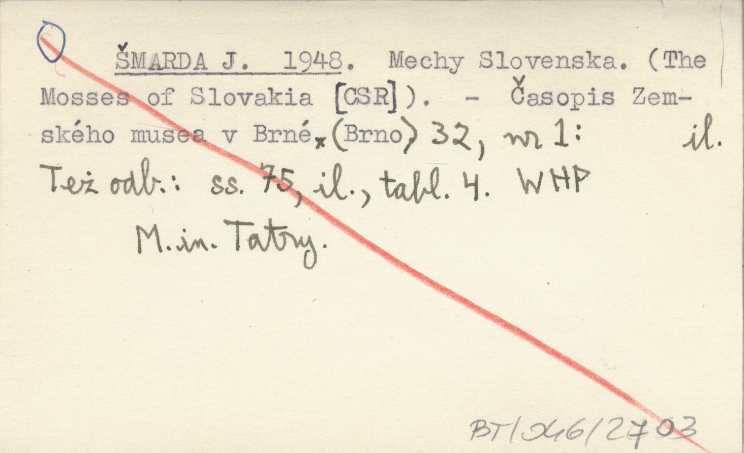 ŠMARDA J. 1948 Mechy Slovenska. (The Mosses of Slovakia [CSR]).