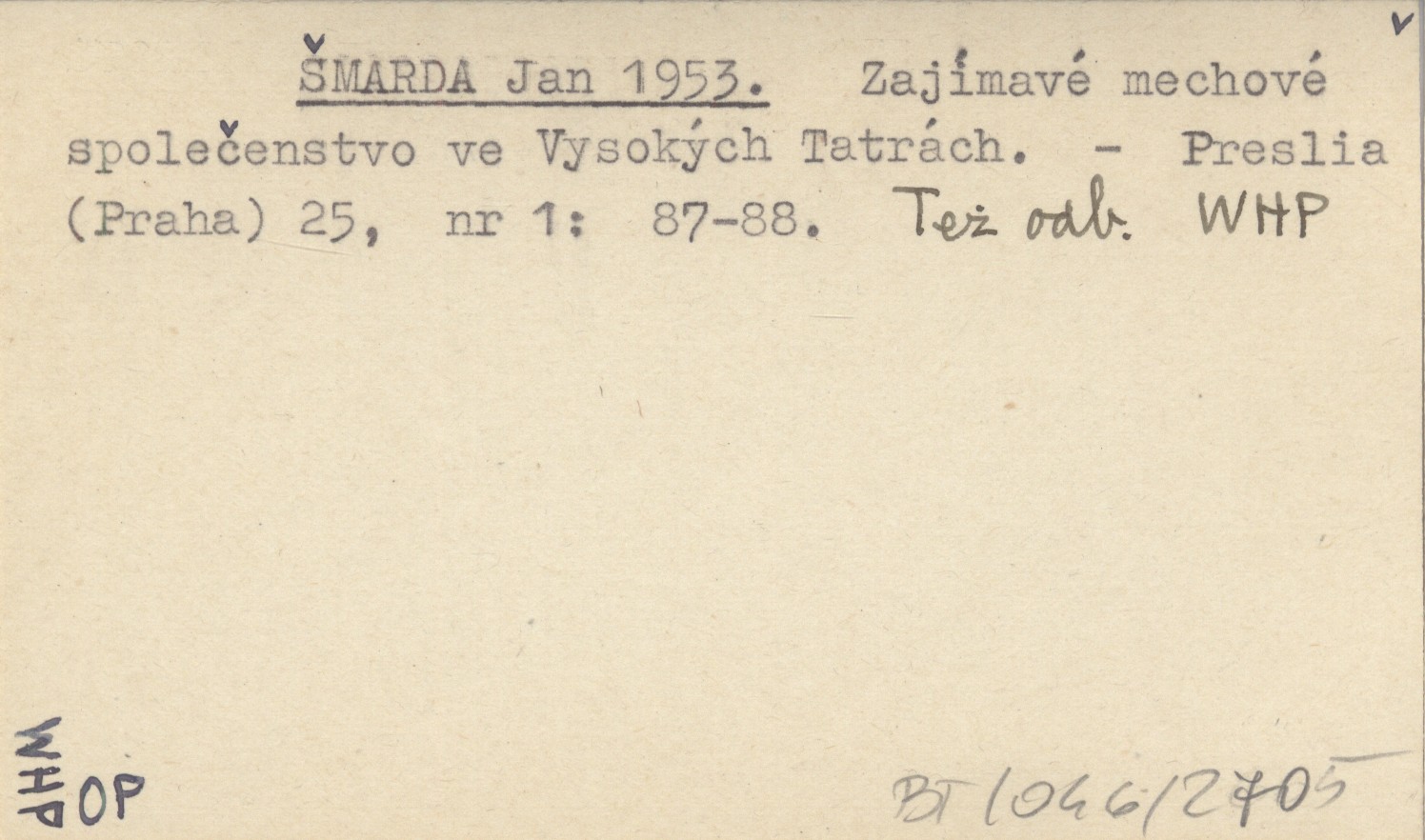 ŠMARDA Jan 1953 Zajímavé mechové společenstvo ve Vysokých Tatrách.