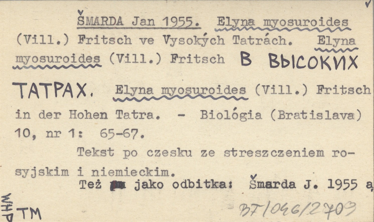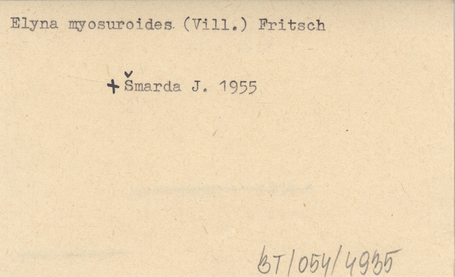 Elyna myosuroides (Vill.) Fritsch ve Vysokęch Tatrách. Elyna myosuroides (Vill.) Fritsch v Vysokich Tatrach. Elyna myosuroides (Vill.) Fritsch in der Hohen Tatra.