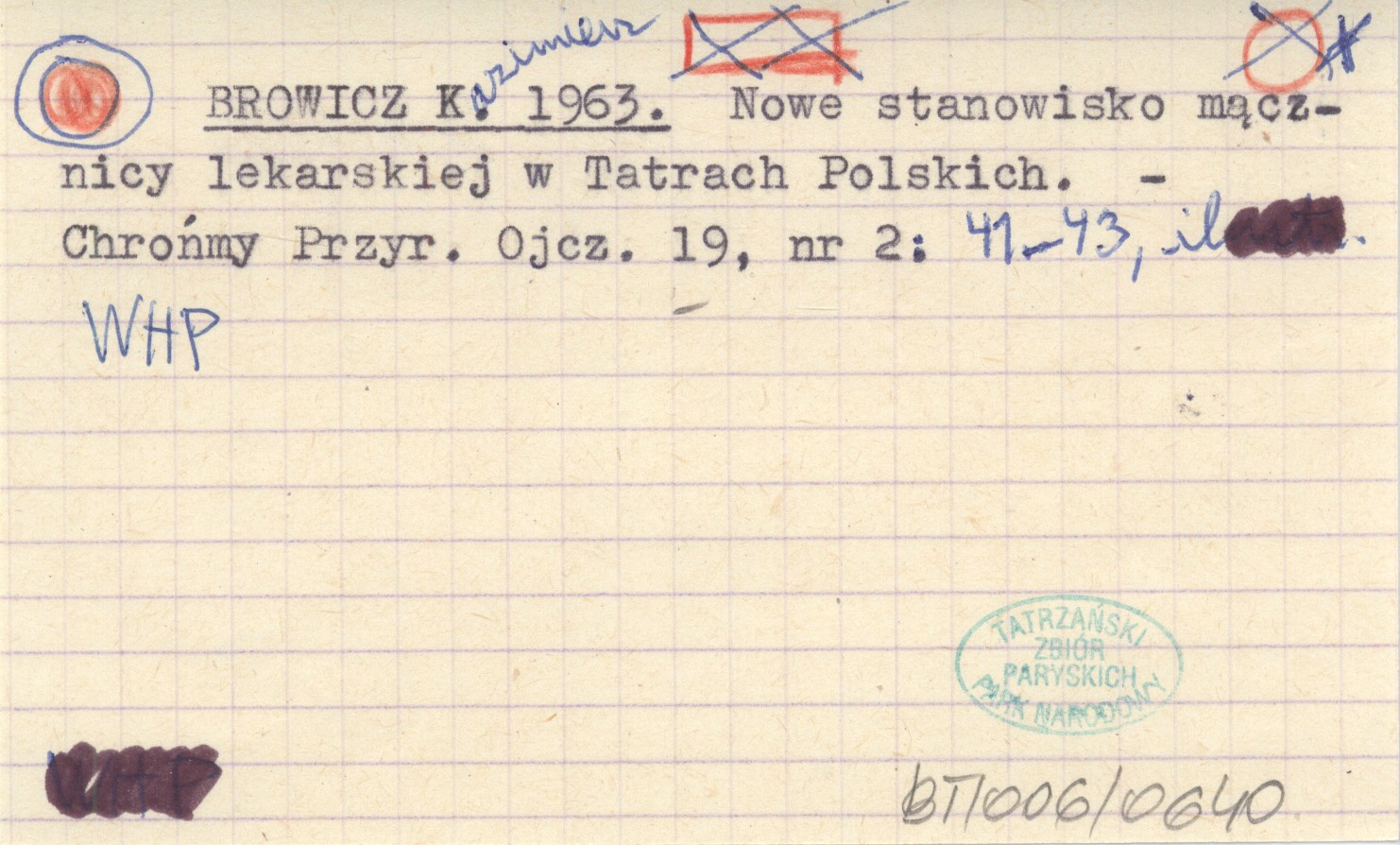 BROWICZ Kazimierz 1963 Nowe stanowisko mącznicy lekarskiej w Tatrach Polskich.
