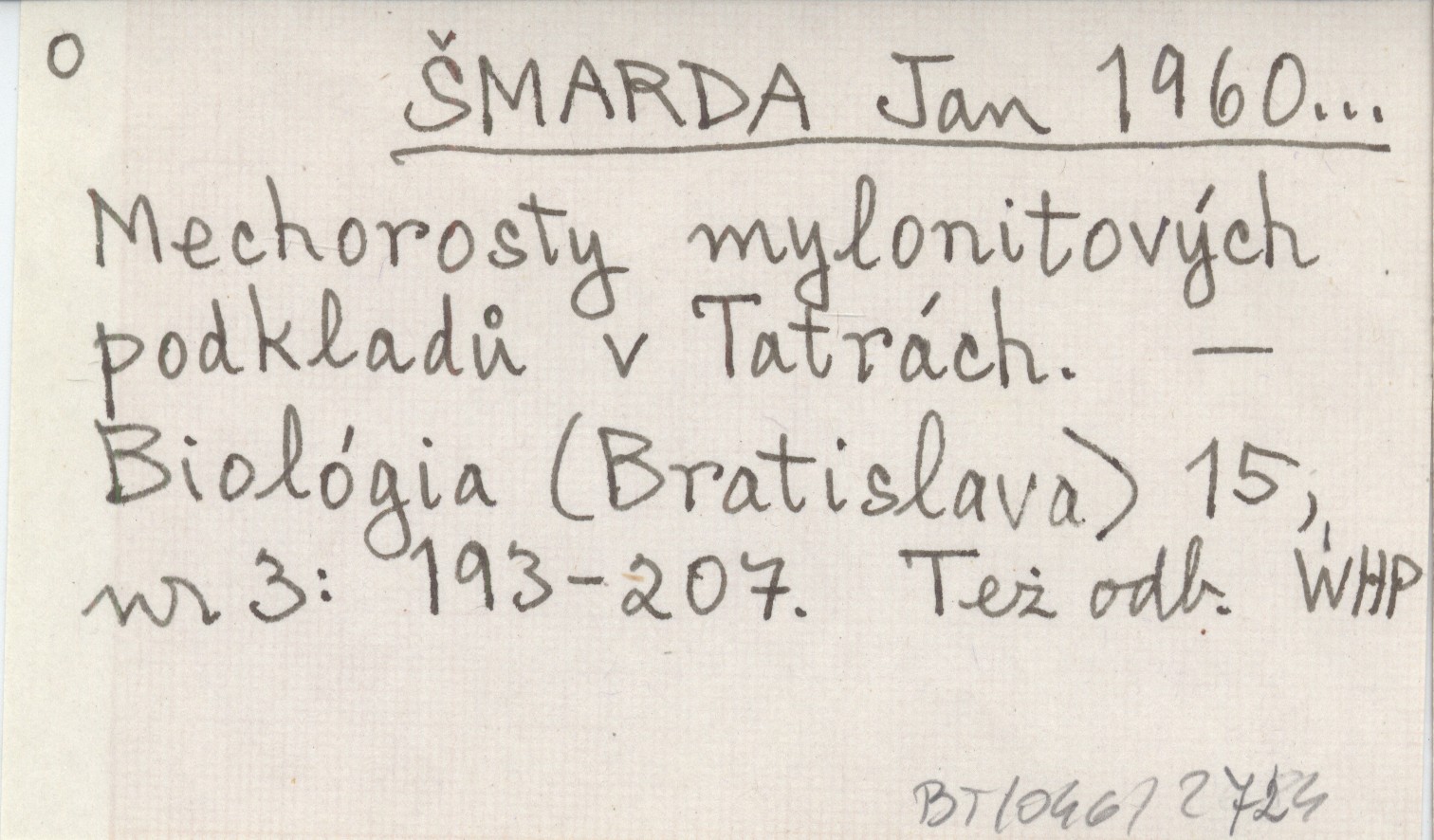 ŠMARDA Jan 1960... Mechorosty mylonitových podkladů v Tatrách.