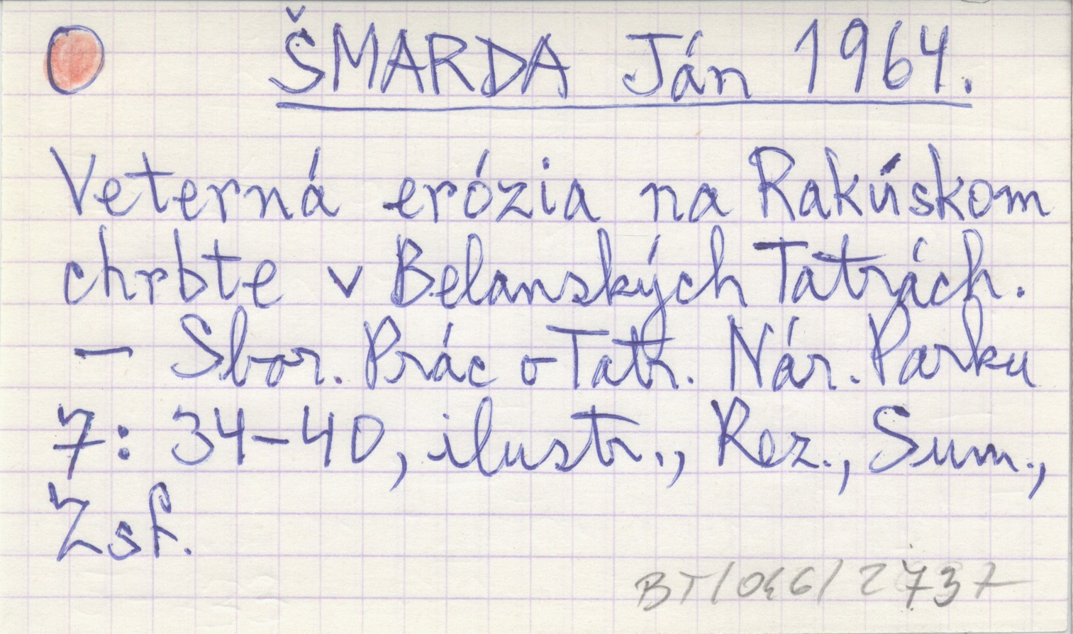 ŠMARDA Ján 1964 Veterná erózia na Rakúskom chrbte v Belanských Tatrách.