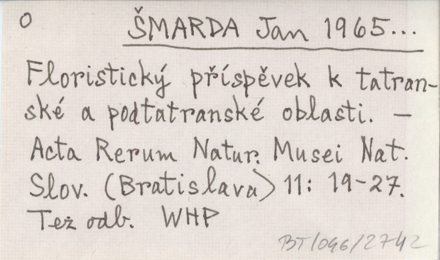 ŠMARDA Jan 1965... Floristický příspěvek k tatranské a podtatranské oblasti.