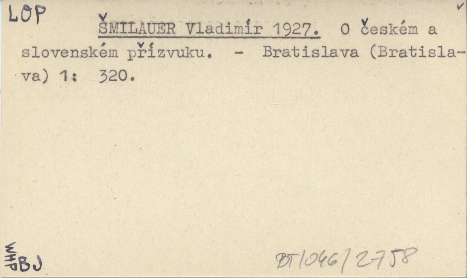ŠMILAUER Vladimír 1927 O českém a slovenském přízvuku.