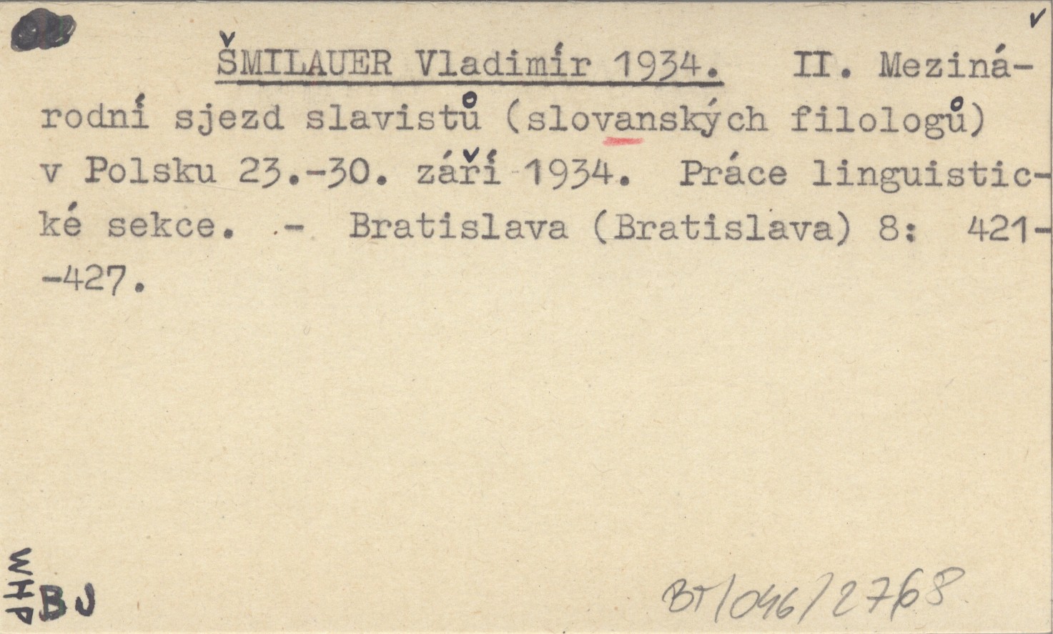 ŠMILAUER Vladimír 1934 II. Mezinárodní sjezd slavistů (slovanských filologů) v Polsku 23.-30. září 1934. Práce linguistické sekce.