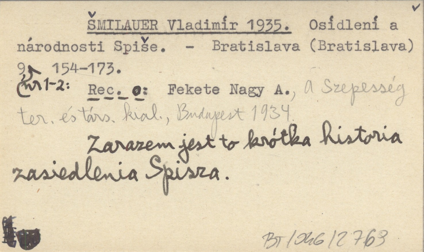 Bratislava (Bratislava) , 9, nr 1-2: 154-173. Recenzja o: FEKETE NAGY A., A Szepesség ter. és társ. kial., Budapest 1934. Zarazem jest to krótka historia zasiedlenia Spisza.