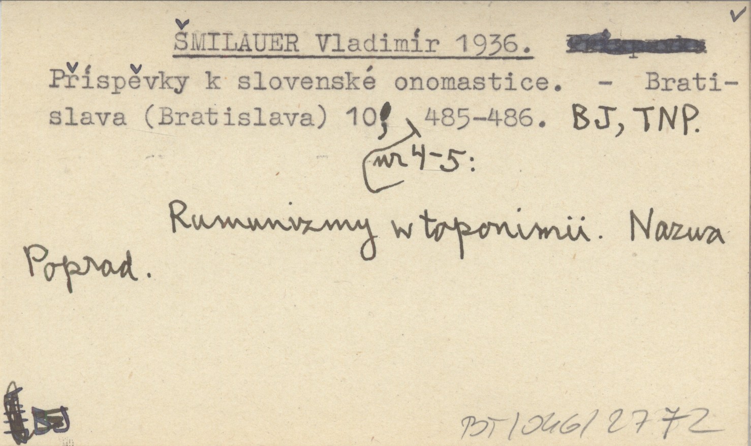 ŠMILAUER Vladimír 1936 Příspěvky k slovenské onomastice.