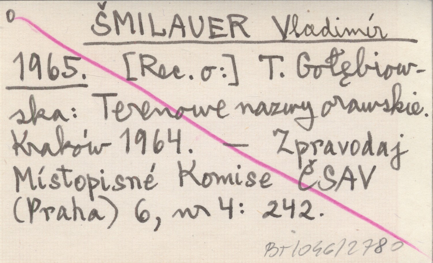 ŠMILAUER Vladimír 1965 [Rec. o:] T. Gołębiowska: Terenowe nazwy orawskie. Kraków 1964.
