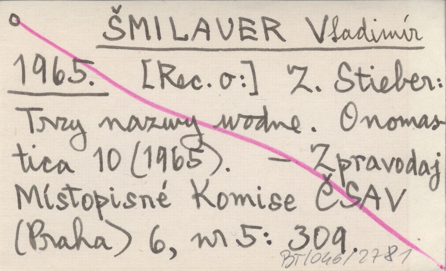 ŠMILAUER Vladimír 1965 [Rec. o:] Z. Stieber: Trzy nazwy wodne. Onomastica 10 (1965).