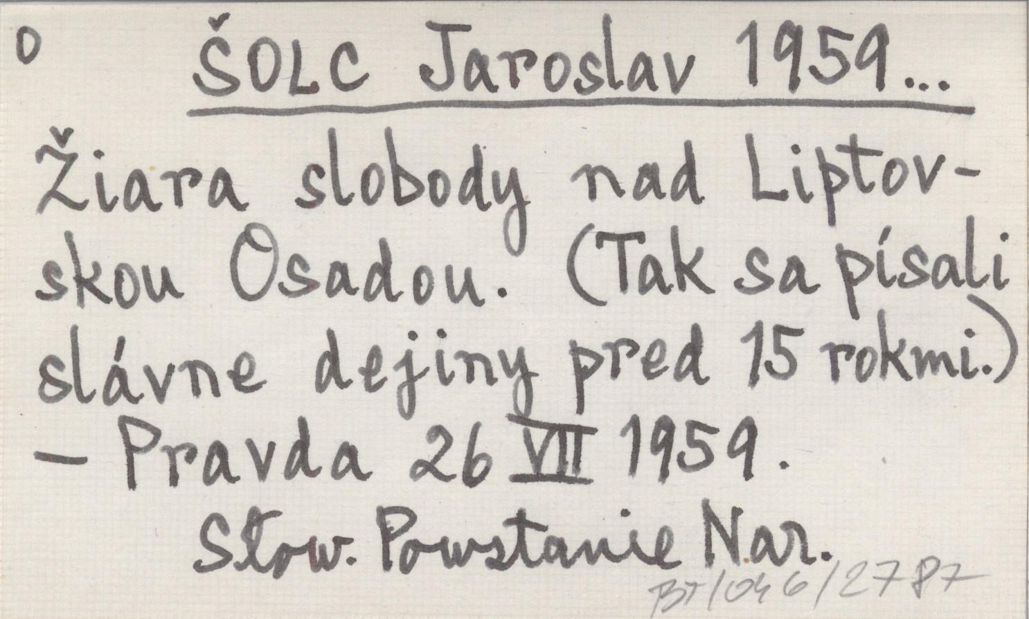 ŠOLC Jaroslav 1959... Žiara slobody nad Liptovskou Osadou. (Tak sa písali slávne dejiny pred 15 rokmi).