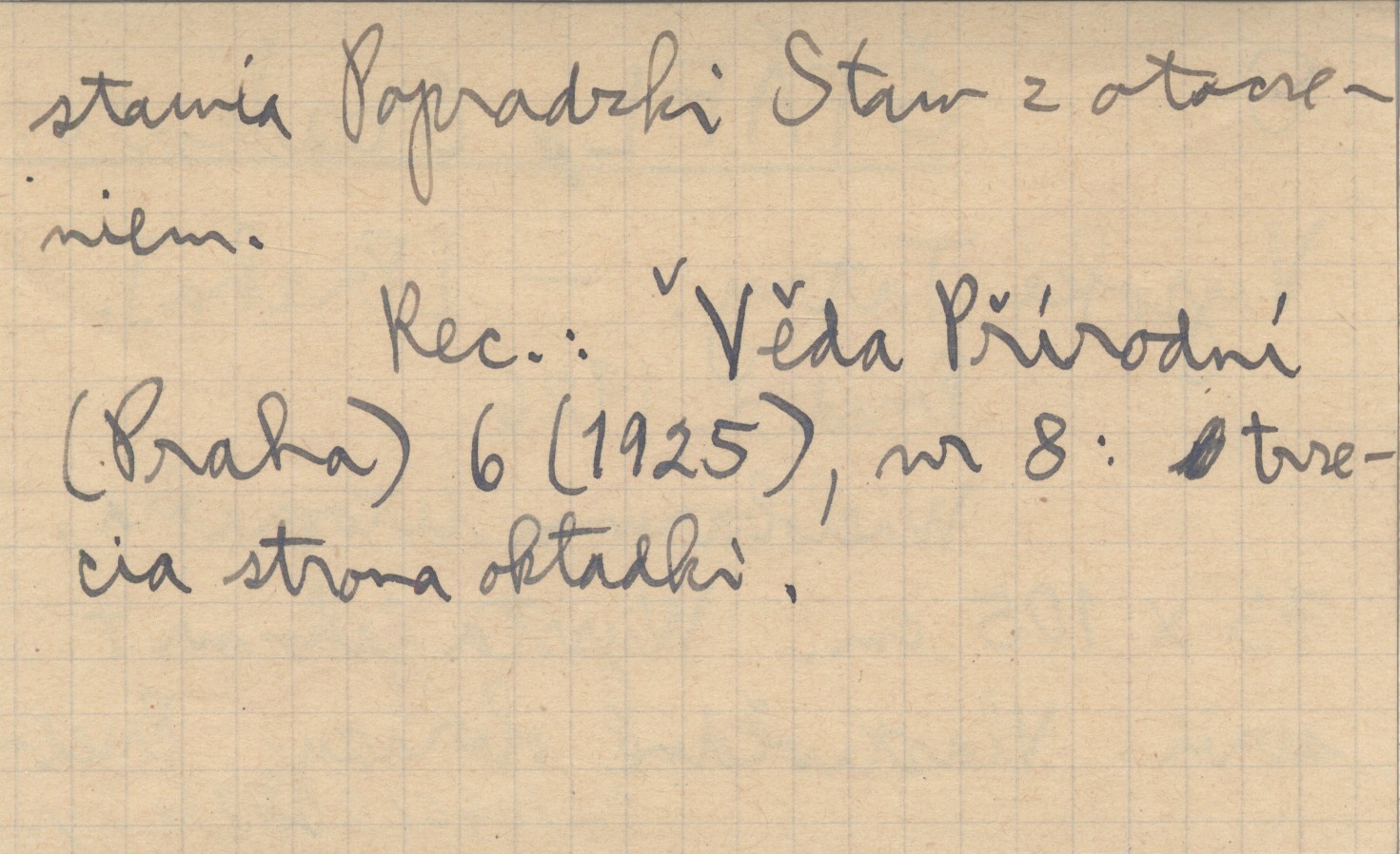 [Praha] (Vlastivědné obrazy, nr 7) , Wielobarwna litografia, 73x105 cm. Przedstawia Popradzki Staw z otoczeniem. REC: Věda Přírodní (Praha) 6 (1925), nr 8: 3 (okł.).