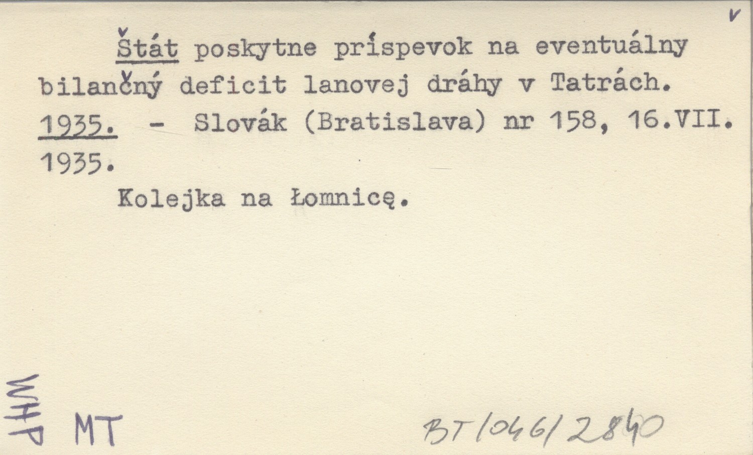 Slovák (Bratislava) , Nr 158 (16 VII 1935). Kolejka na Łomnicę.