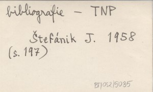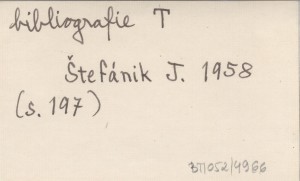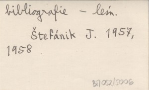 Bibliografickę Sborník, [2] (1958, druk 1959): 189-198. S. 196: w Orawskim Podzamczu (bibliografia przemysłu le¶nego). S. 197: w Muzeum Tatrzańskim w Popradzie (bibliografia tatrzańska).