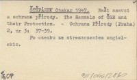 ŠTĚPÁNEK Otakar 1947 Naši ssavci a ochrana přírody. The Mammals of ČSR and their Protection.