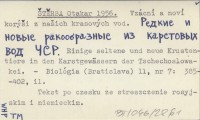 ŠTĚRBA Otakar 1956 Vzácní a noví korýši z našich krasových vod. Redkie i novye rakoobraznye iz karstovych vod ČSR. Einige seltene und neue Krustentiere in den Karstgewässern der Tschechoslowakei.